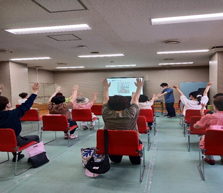 理学療法士による腰痛予防体操、看護師による転倒予防のススメ、さらに脳トレチャレンジや、足の体操(足って大事!)をそれぞれ20分程度で行い、実際に参加者の皆さまに体験していただきました。単なる説明だけでなく、来場者と一緒に体操を行い、脳トレに挑戦することで、生活の中で無理なく取り入れられる健康づくりを実感していただけたと思います。