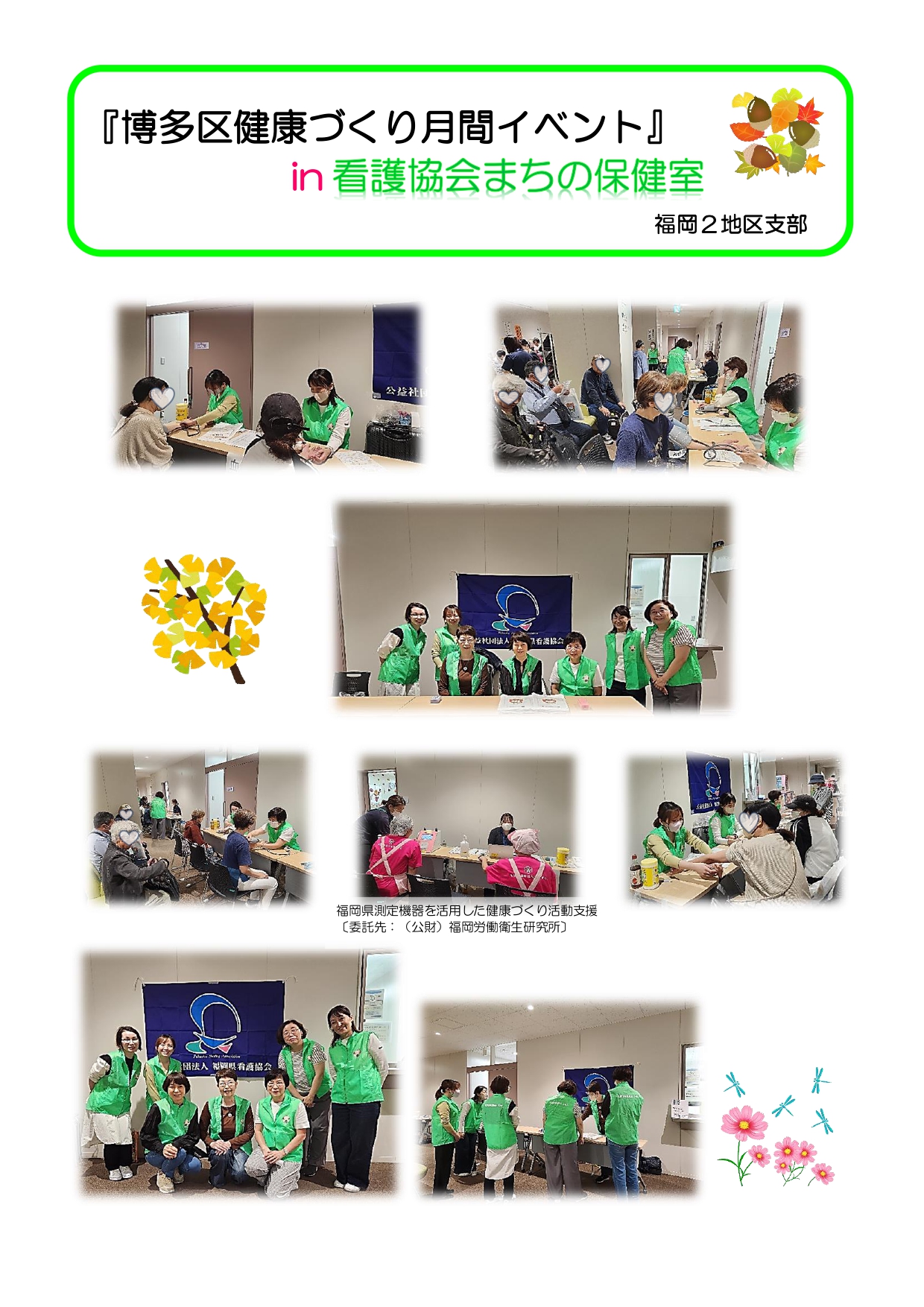 博多区役所でのイベントを通じて、地域住民の幅広い世代に健康づくりへの関心を高めていただくとともに、看護協会の活動をより多くの方に知っていただく機会となりました。