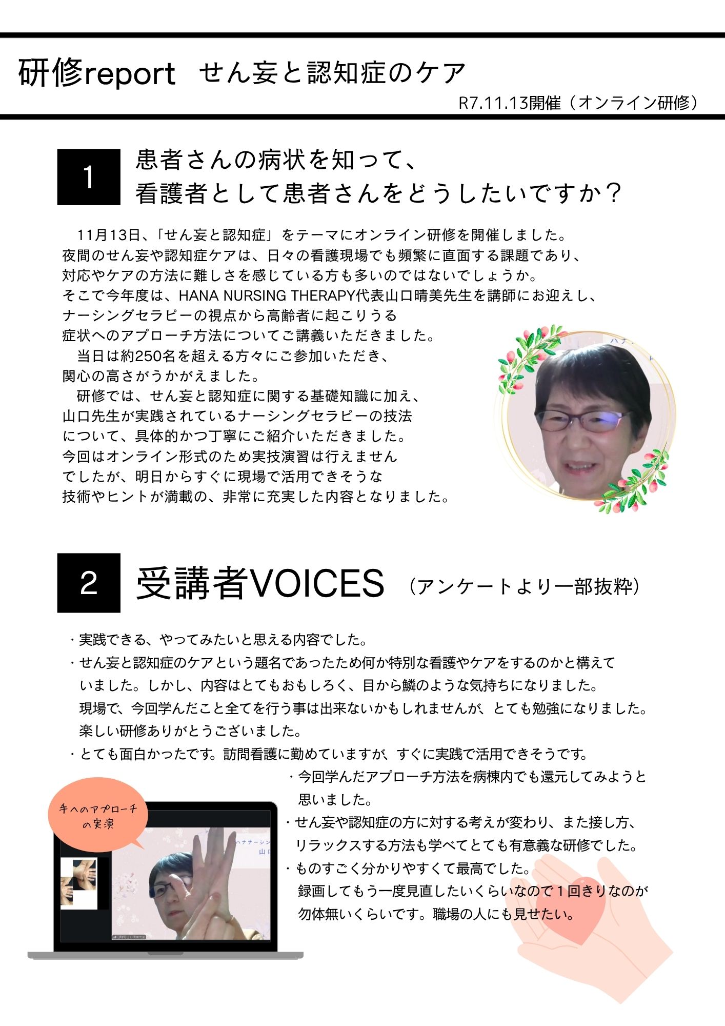 11月13日(木)「せん妄と認知症のケア」オンライン研修を開催いたしました。
