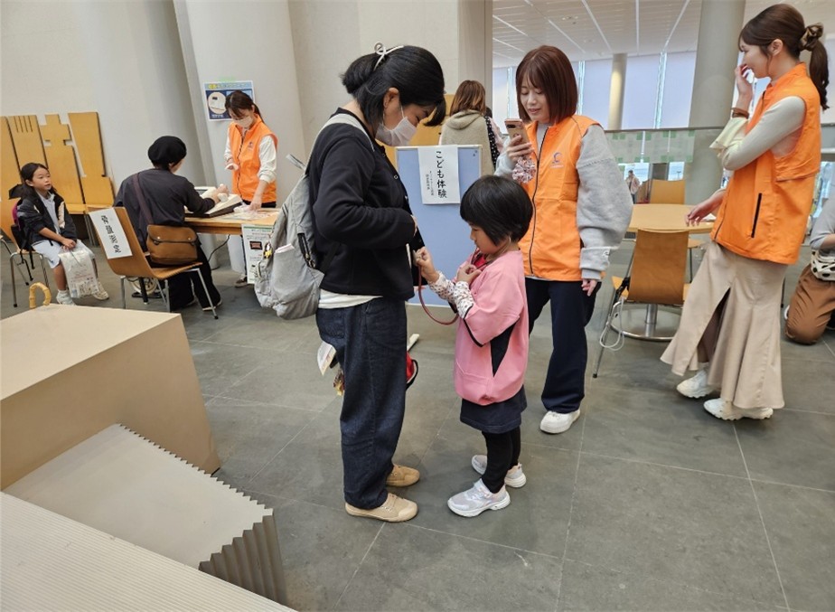 あいにくの天候でしたが、屋内での開催のため「安心して参加できた」という声が多く聞かれました。特に、こども「もしもし」体験がご家族連れに好評で、骨密度・血管年齢・脳年齢の測定も年代を問わず希望者が絶えないほど盛況でした。今回の活動は、看護協会の活動を広く知っていただく良い機会となりました。