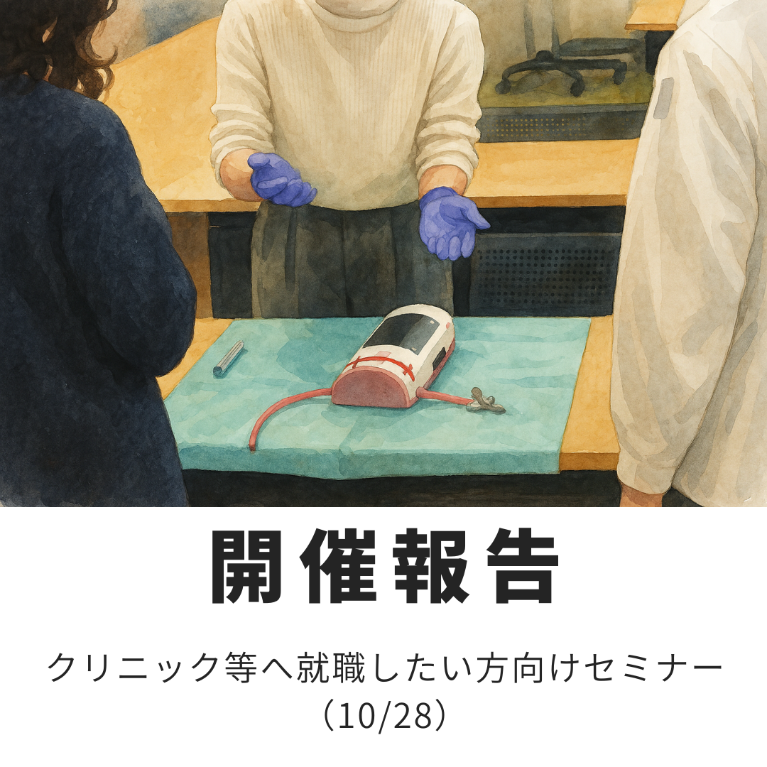 - 最新の手技を知ることができ、再就職の不安が1つ消すことができました。ありがとうございました。(50代 ブランク歴:10年以上)