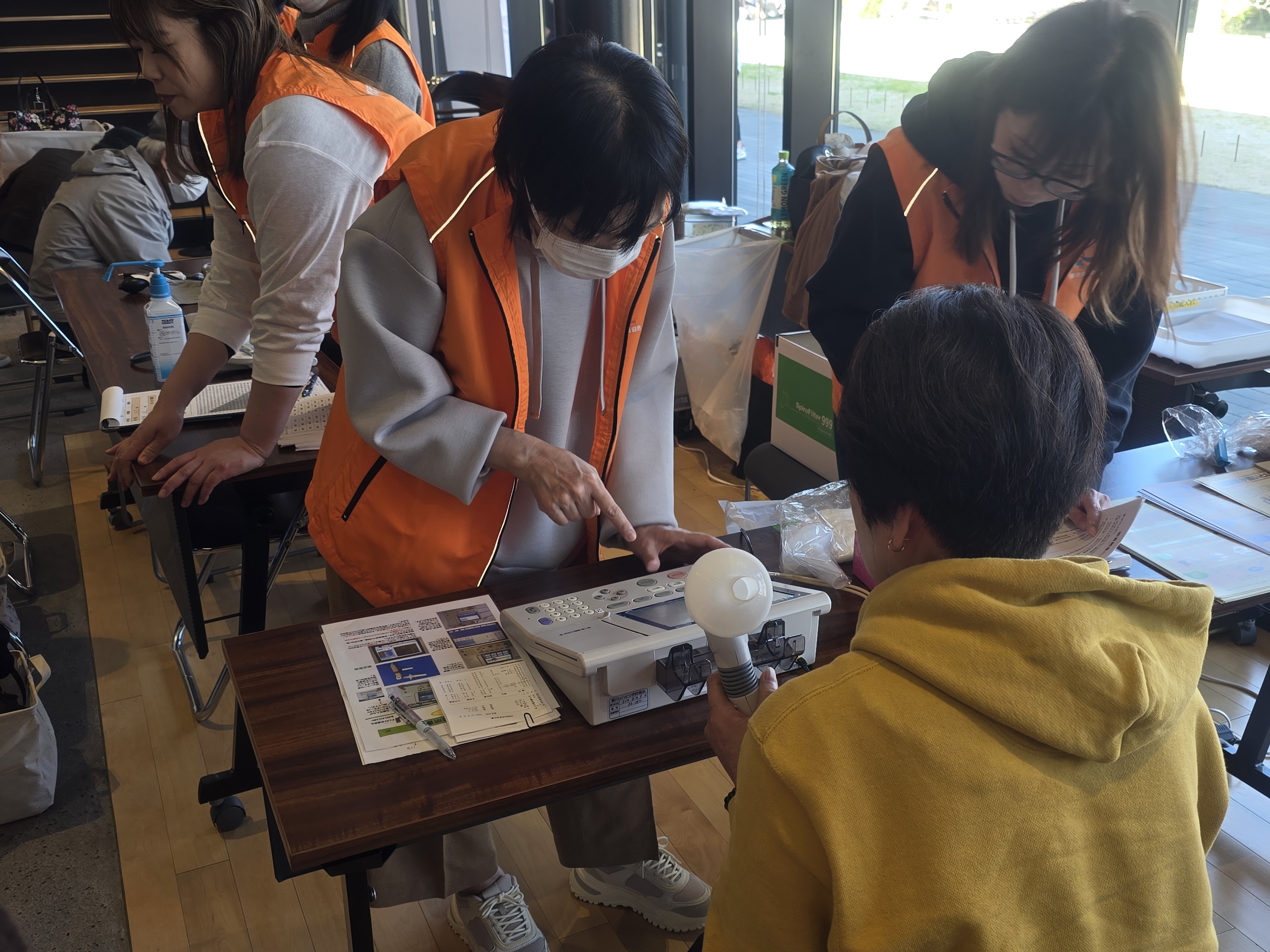 今年度は、従来の肌年齢測定に代わり、新たに「肺機能検査(肺活量測定)」を実施しました。握力測定とあわせて、ご自身の身体機能を知る良い機会となり、幅広い世代の方に楽しみながらご参加いただくことができました。