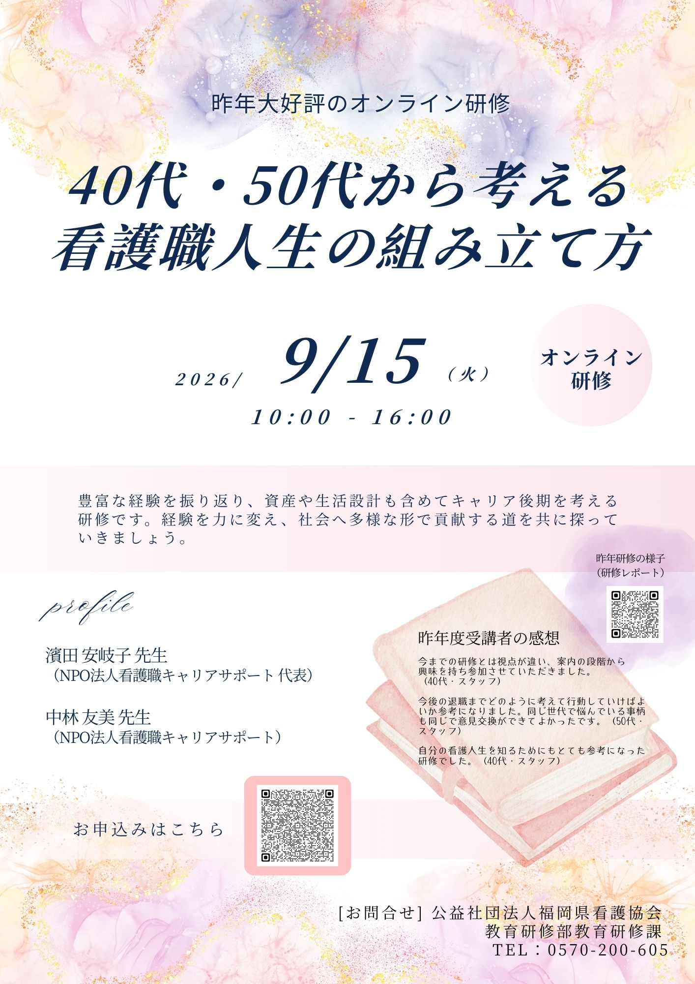 【オンライン】40代・50代から考える看護職人生の組み立て方