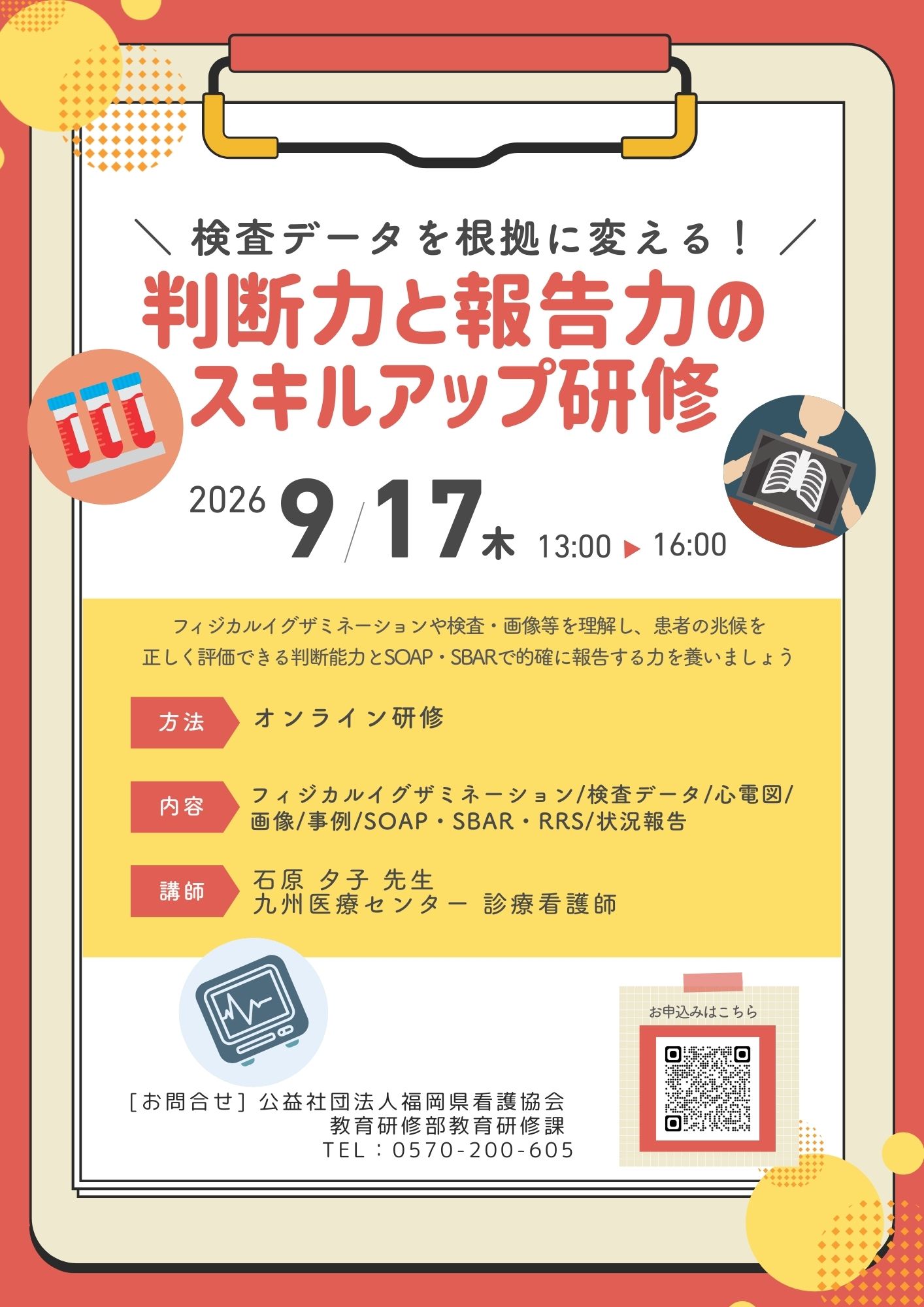 ★NEW★【オンライン】検査データを根拠に変える!判断力と報告力のスキルアップ研修