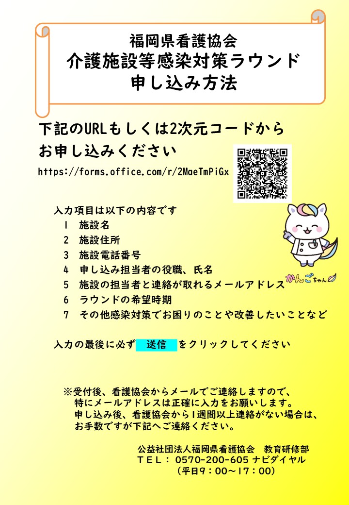ラウンド対象施設は、県内の介護施設等であれば、会員・非会員の区別なくお申込みいただけます。