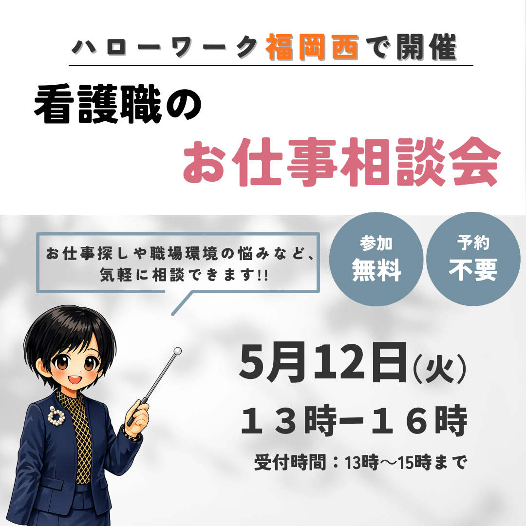 5/12(火)ハローワーク福岡西にて看護職のお仕事相談を実施します