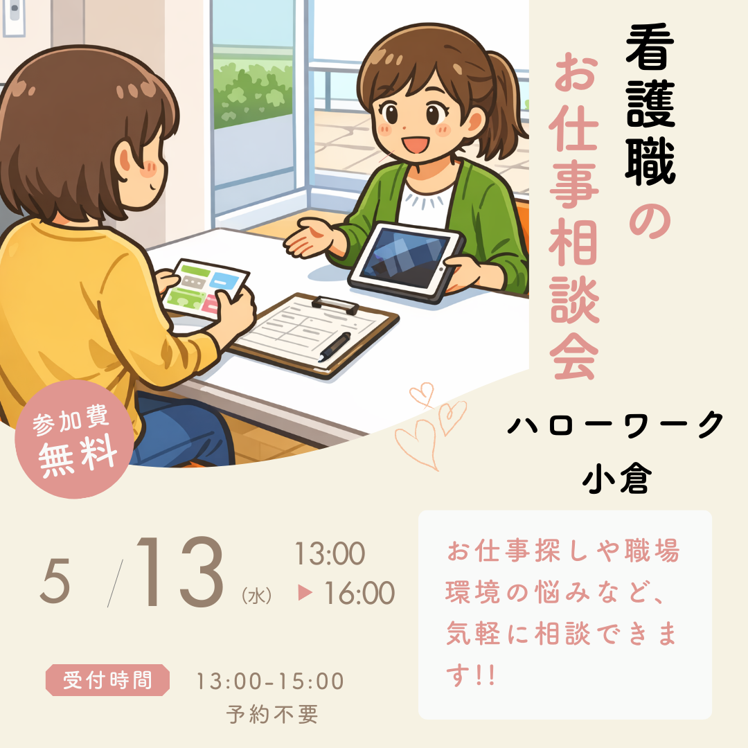 5/13(水)ハローワーク小倉にて看護職のお仕事相談を実施します