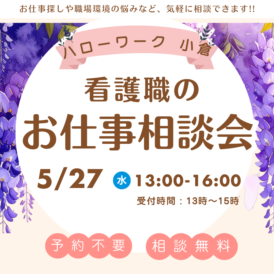 5/27(水)ハローワーク小倉にて看護職のお仕事相談を実施します