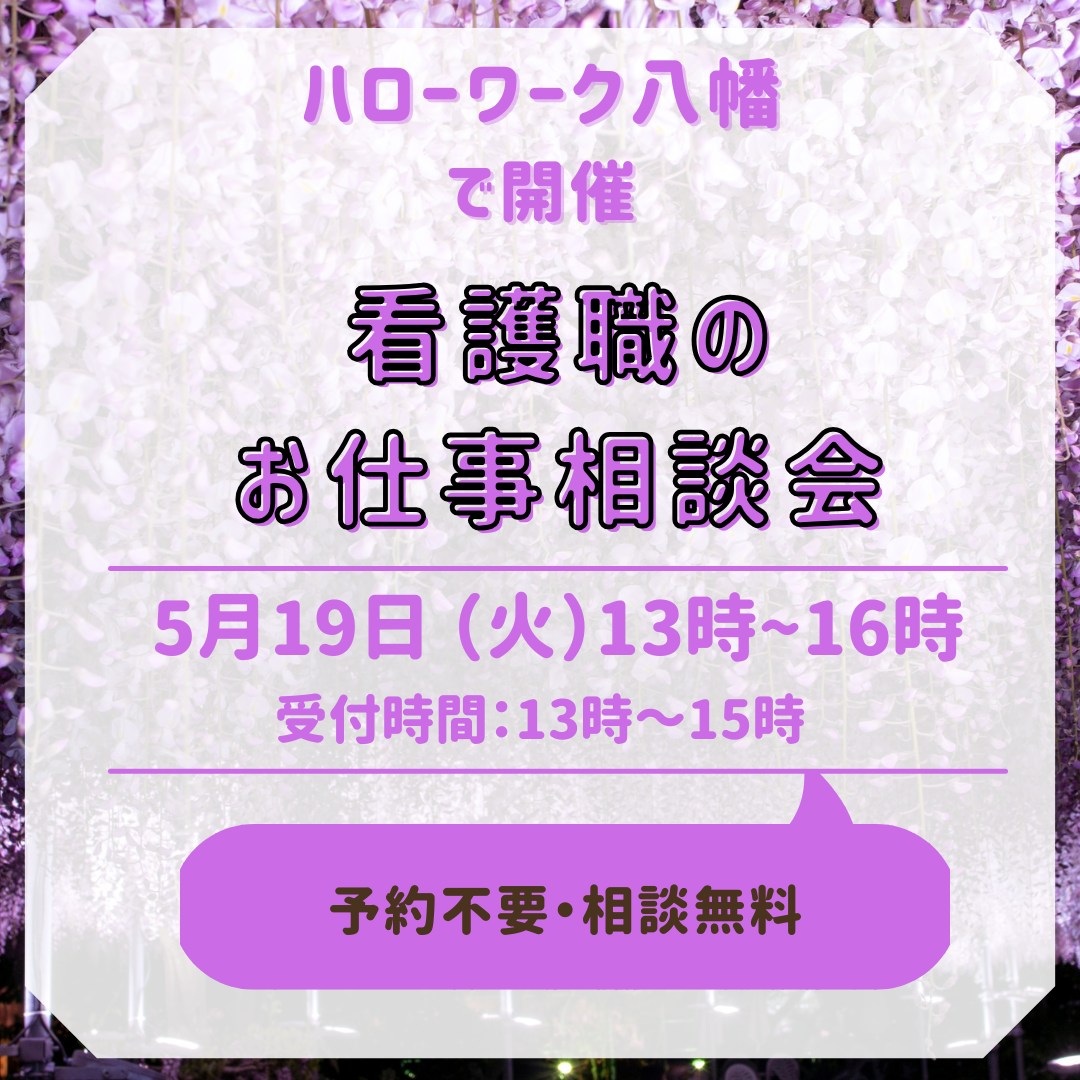 5/19(火)ハローワーク八幡(黒崎駅前庁舎)にて看護職のお仕事相談を実施します