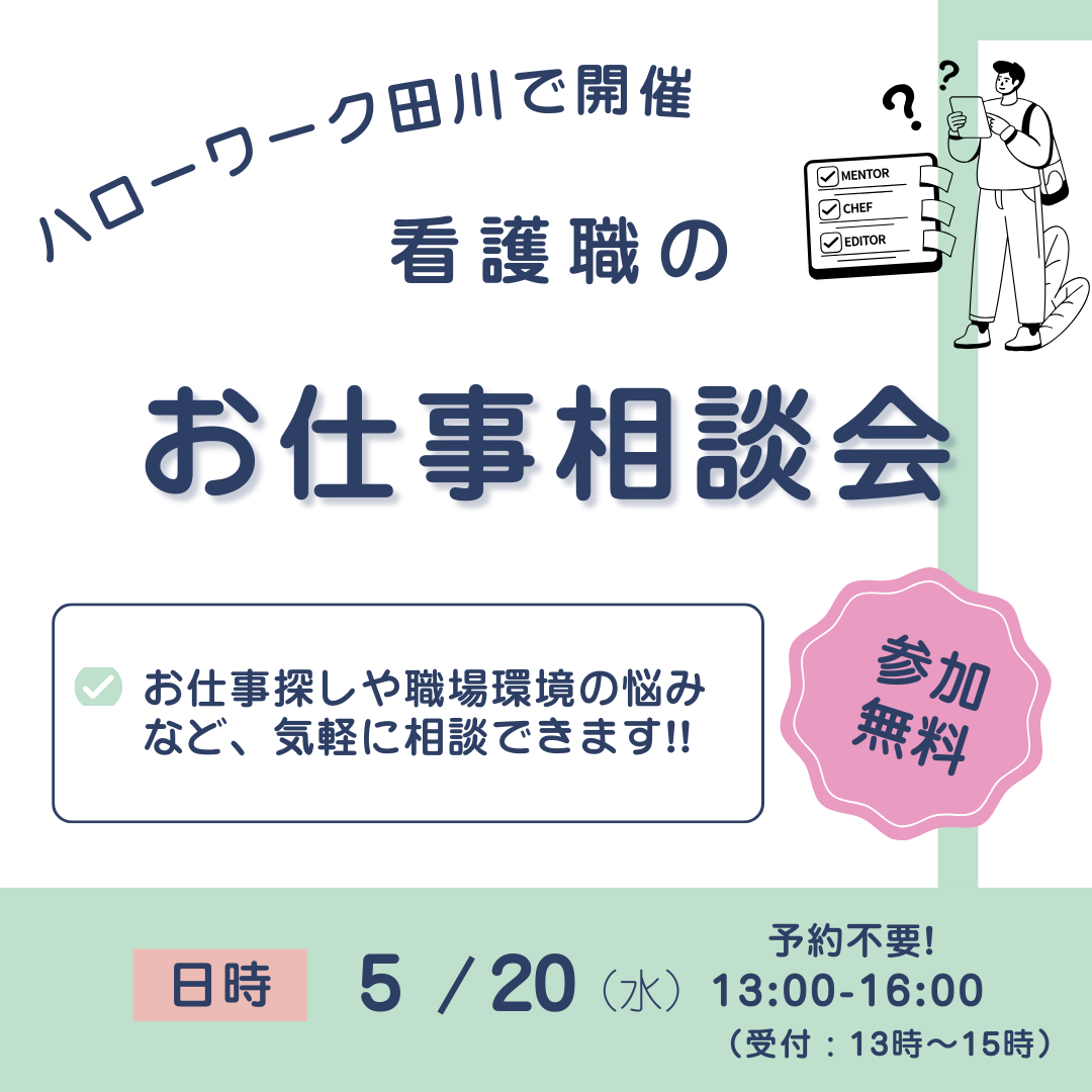 5/20(水)ハローワーク田川にて看護職のお仕事相談を実施します