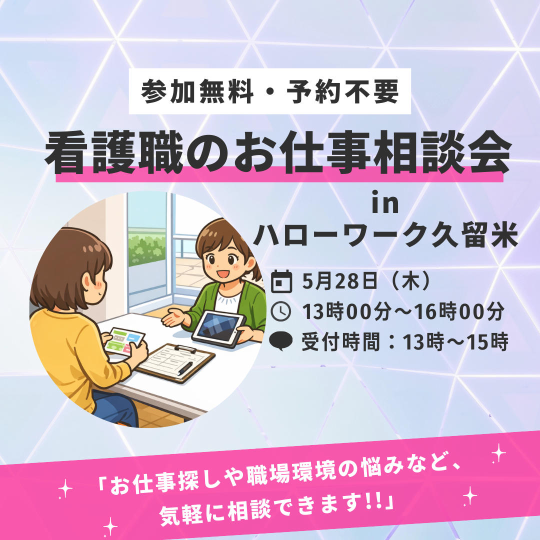 5/28(木)ハローワーク久留米にて看護職のお仕事相談を実施します