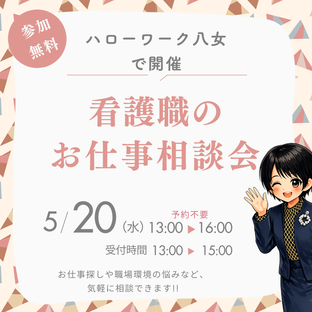 5/20(水)ハローワーク八女にて看護職のお仕事相談を実施します