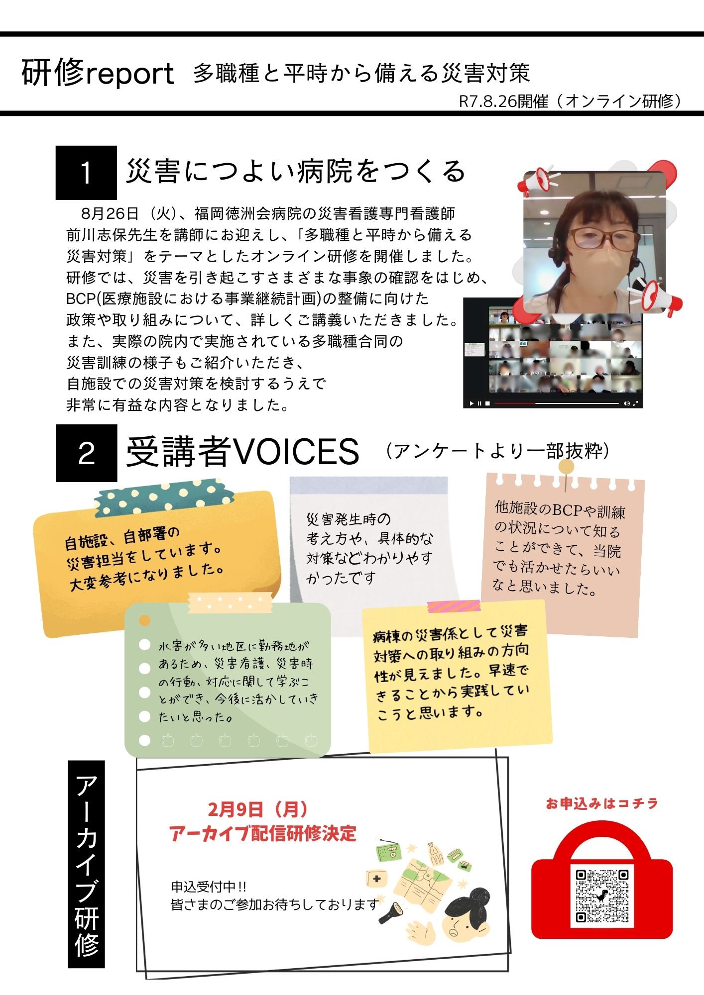 8月26日(火)「多職種と平時から備える災害対策」オンライン研修を開催いたしました。