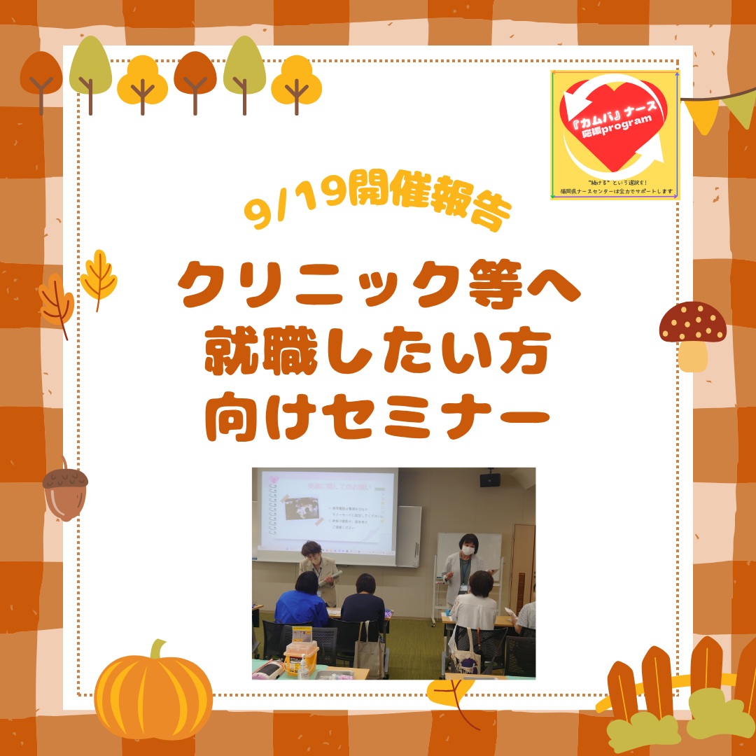 【事業詳細】福岡県ナースセンタークリニック等へ就職したい方向けセミナー 成果報告