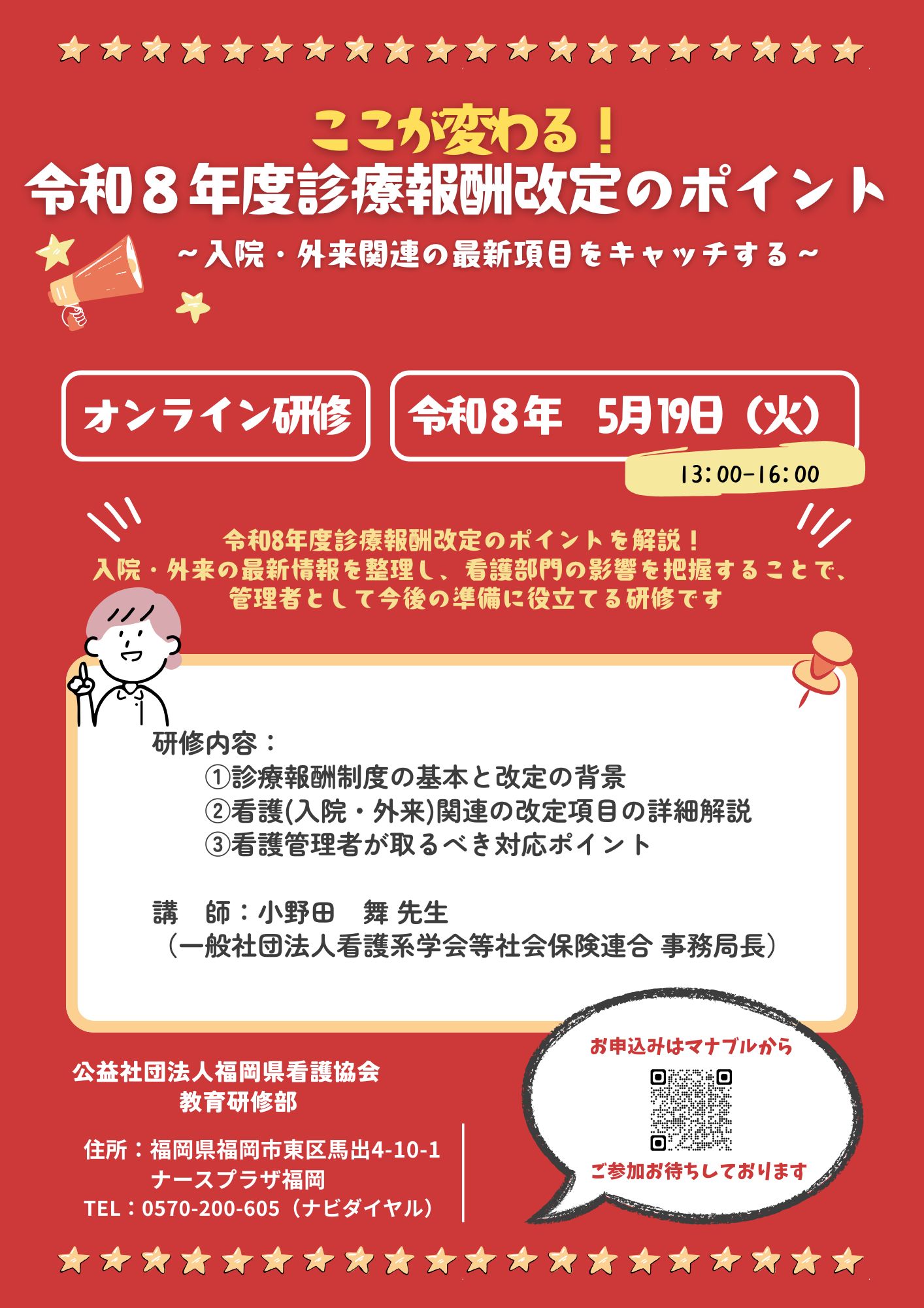 ★NEW★【オンライン】ここが変わる!令和8年度診療報酬改定のポイント~入院・外来関連の最新項目をキャッチする~