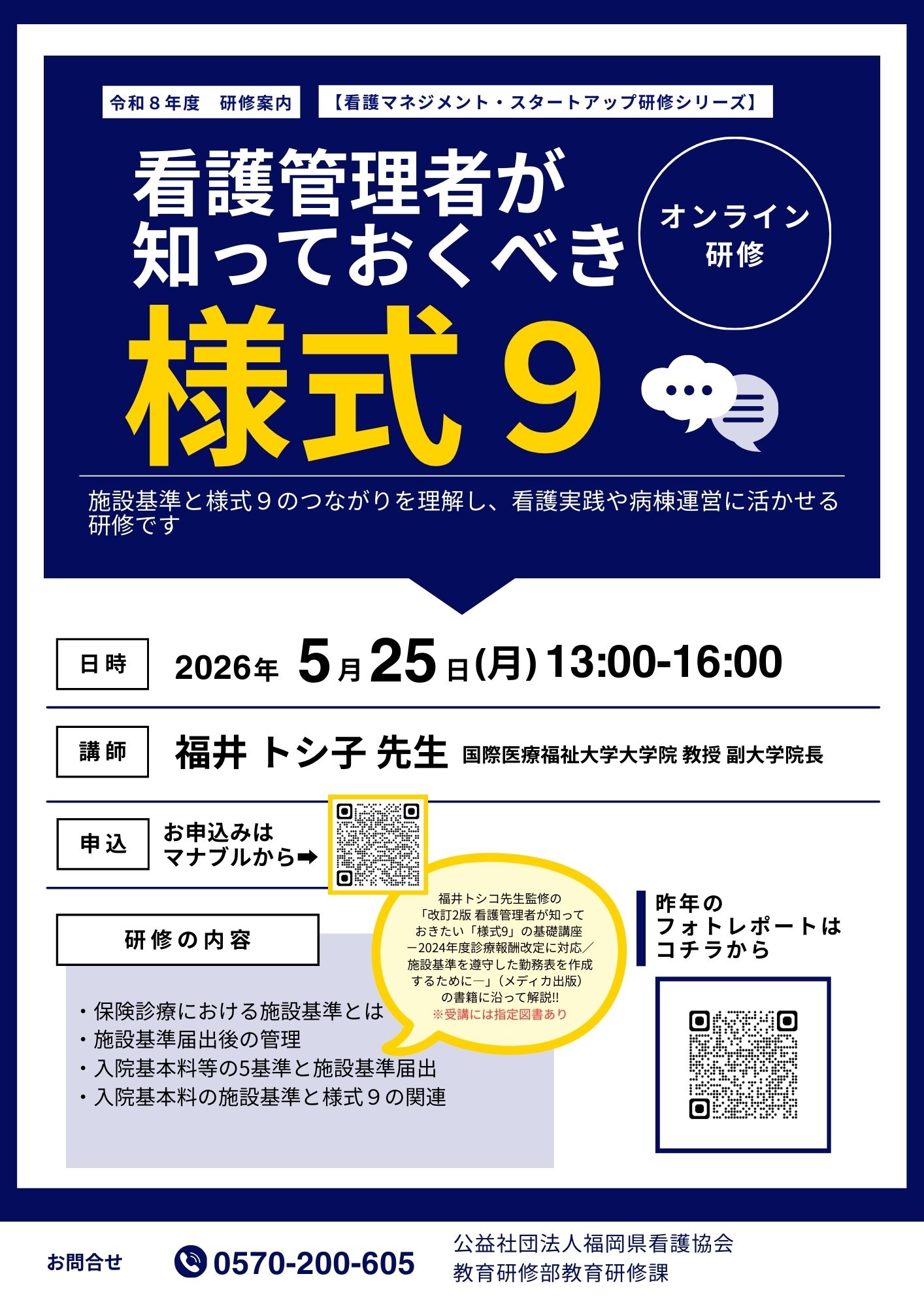 施設基準と様式9のつながりを理解し、看護実践や病棟運営に活かせる研修です