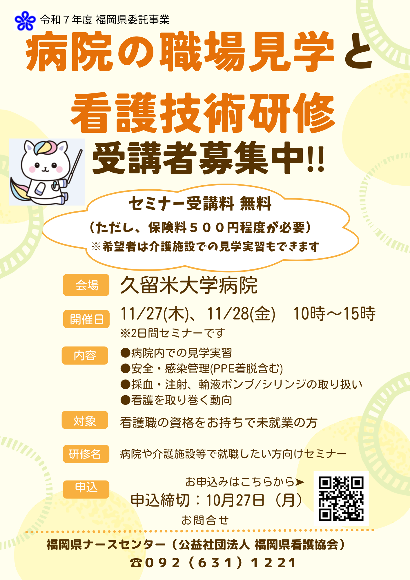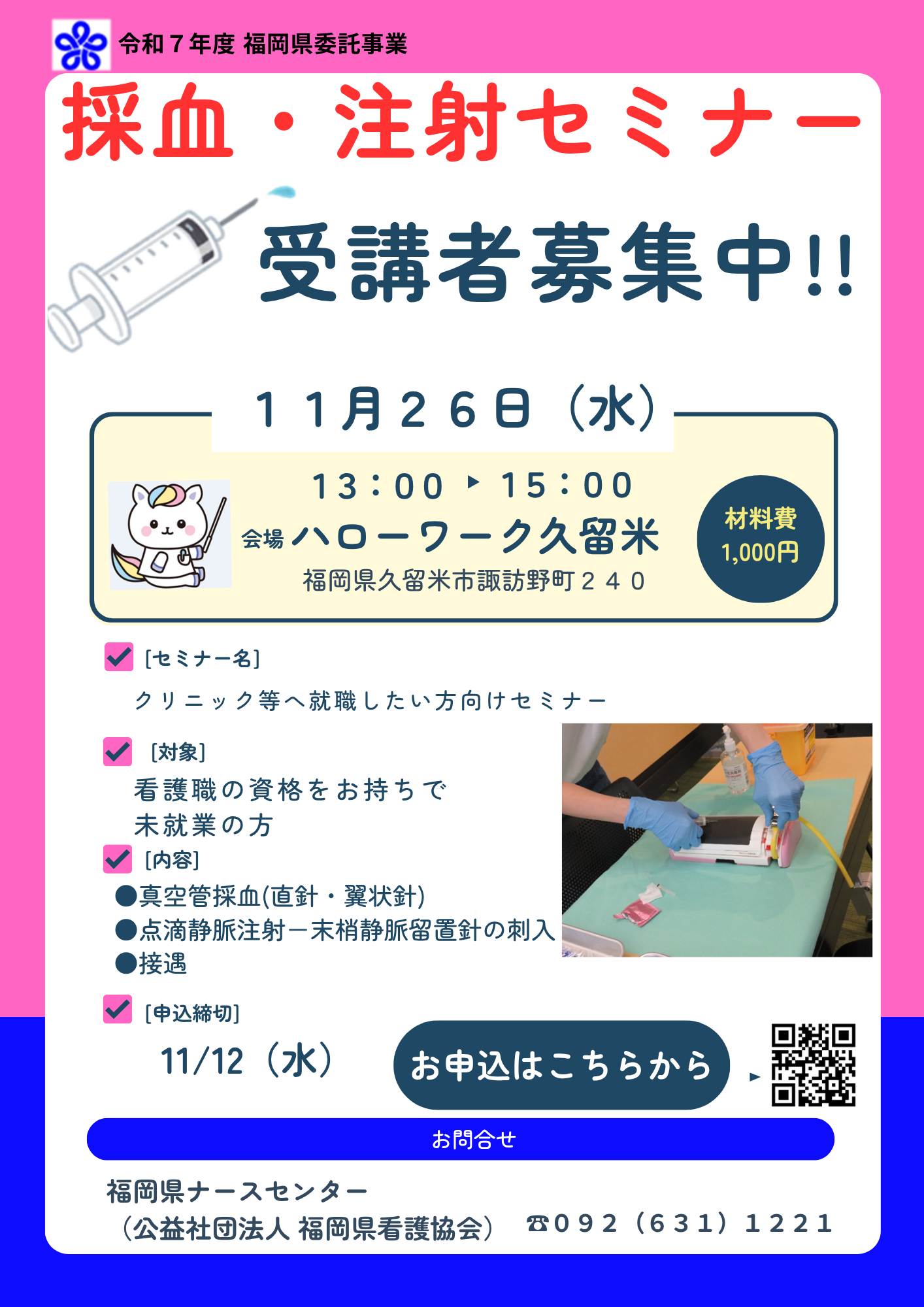 福岡県ナースセンターから、11月に開催する2つの研修のご案内です。