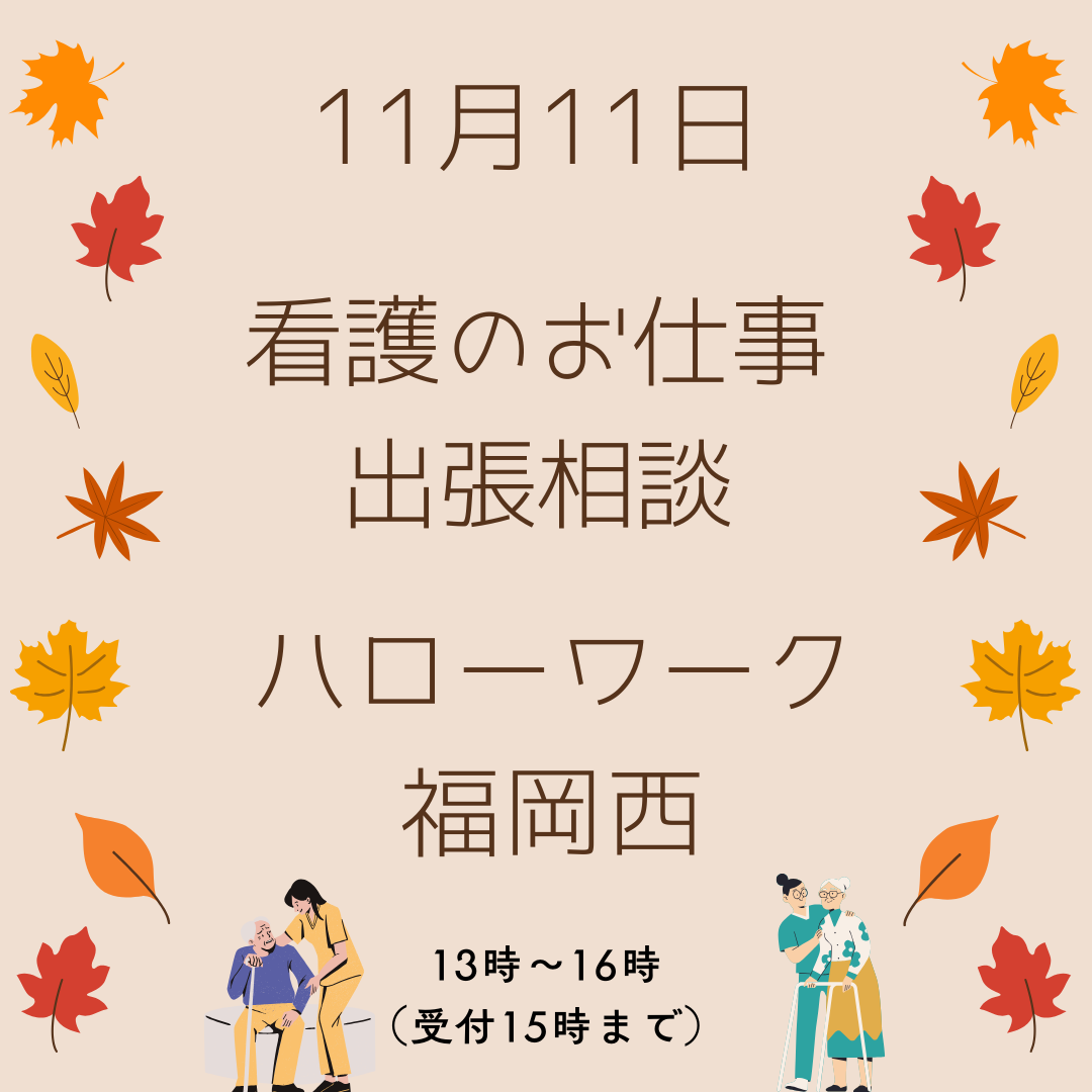 11月11日(火)ハローワーク福岡西にて看護のお仕事出張相談を実施します